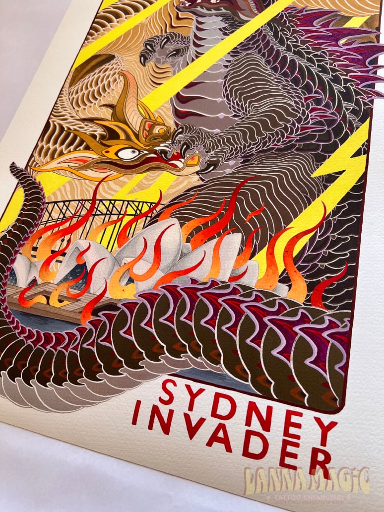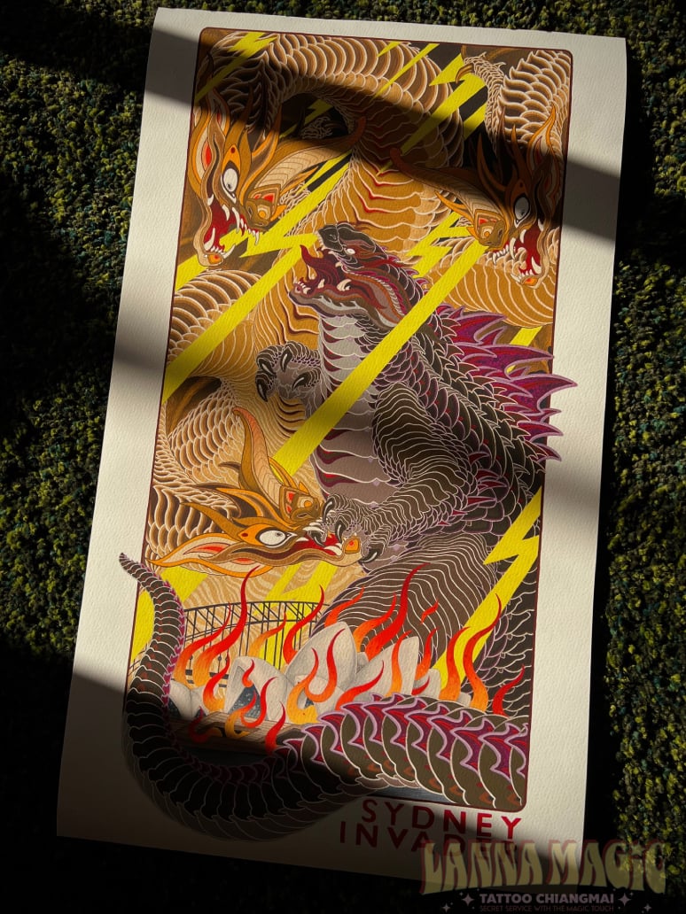 Godzilla x King Ghidorah in my style, Paint it when I was living in Sydney for a couple year ago.