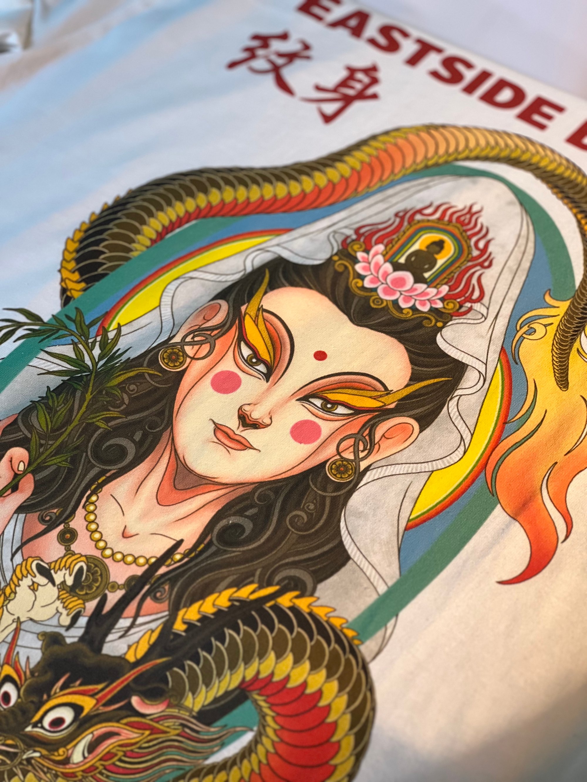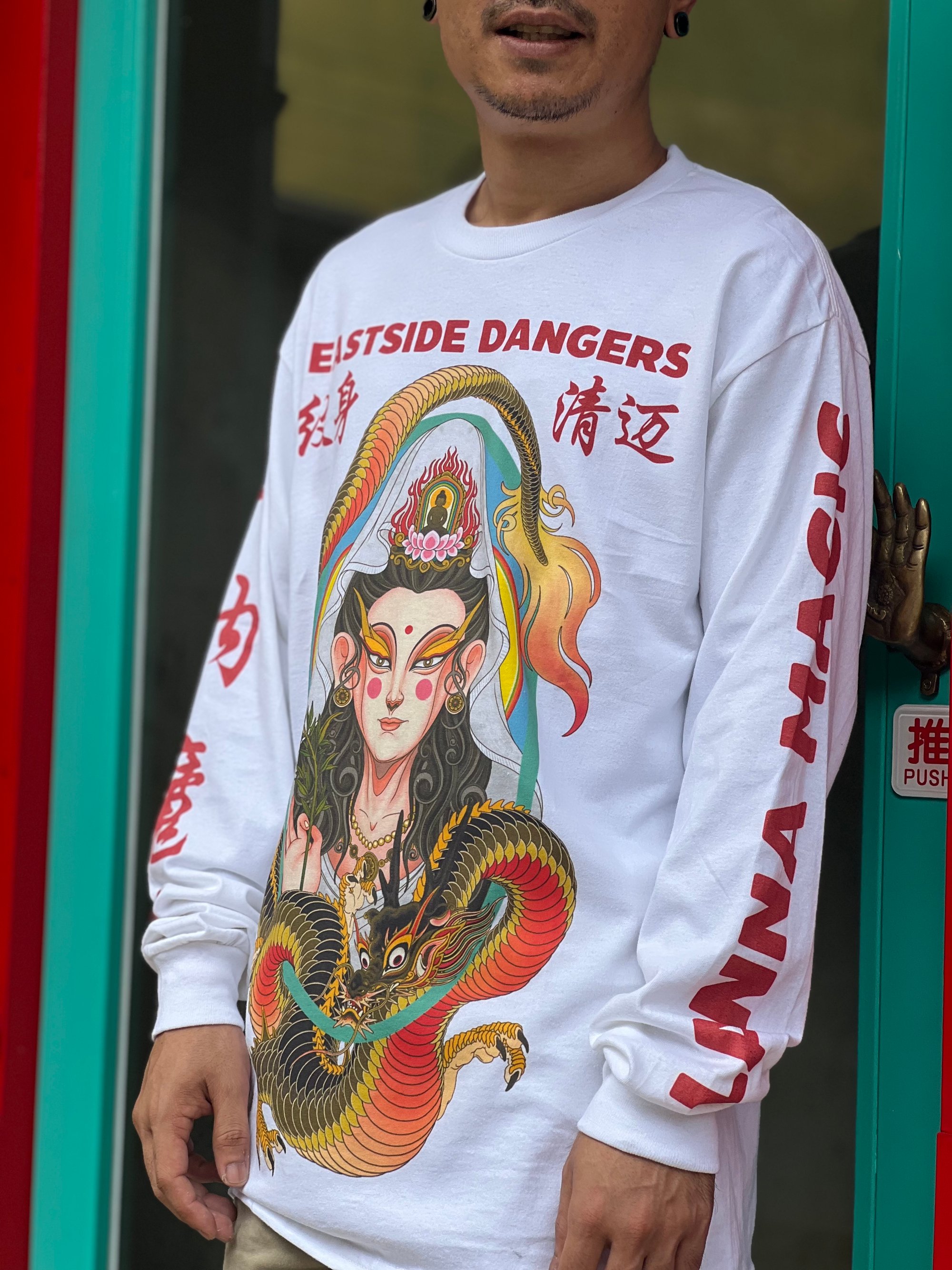 Guan-yin and dragon design of long sleeve,